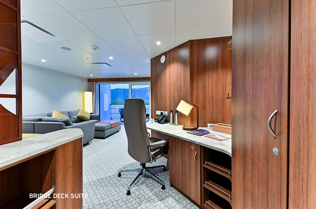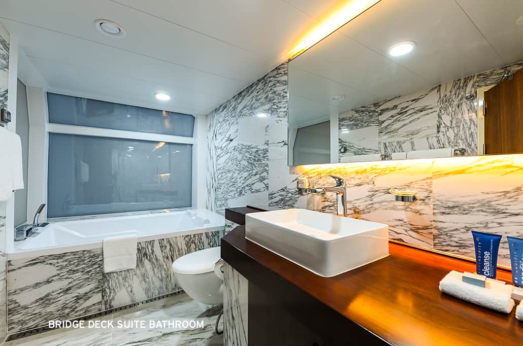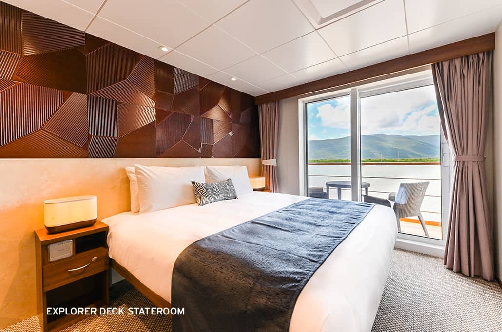 - Two ‘Xplorer’ tenders mounted on hydraulic platforms that allow all guests to embark and disembark for shore excursions without steps, queues or waiting