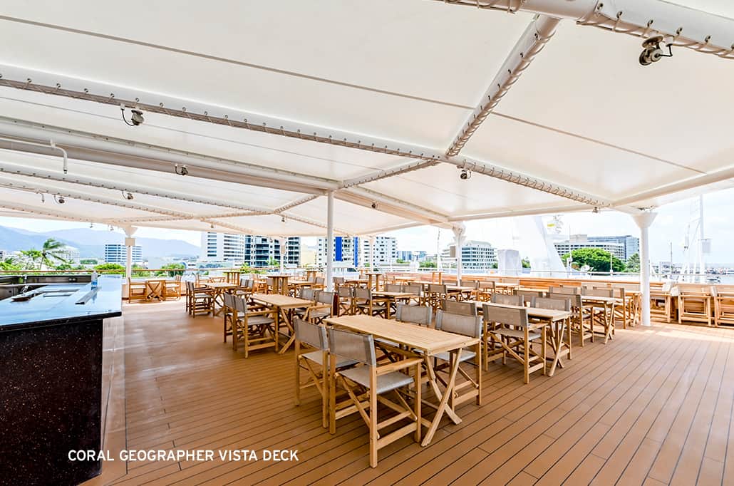 Coral Geographer is designed for tropical expedition cruising and will access remote wilderness shores around the globe that are inaccessible to large cruise vessels and by regular means of travel. The design draws on the latest technical advances as well as Coral Expeditions’ 36 years of experience building and operating expedition ships. With a maximum capacity of 120 guests, she will carry fewer than 100 guests under the company’s SailSAFE plan delivering Coral Expeditions’ renowned warm Australian hospitality, intimate onboard atmosphere and world-class expedition experience.